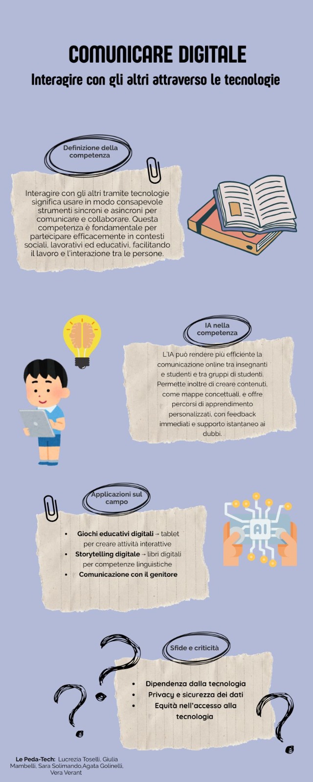Abbiamo preso in esame la sezione Comunicazione e collaborazione, in particolare il paragrafo 2.1: Interagire con gli altri attraverso le tecnologie.