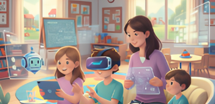 Siamo partite delineando il contesto: una sezione della Scuola dell'infanzia. Abbiamo poi pensato ai soggetti da inserire: bambini dai 3 ai 6 anni, un adulto professionista e strumenti tecnologici come tablet e visore.